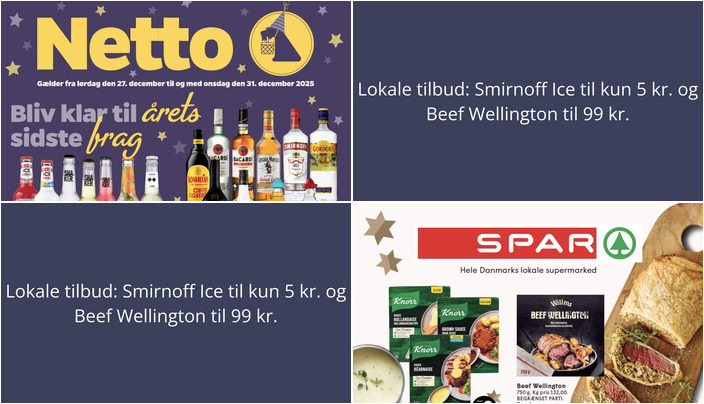 Spar har et lækkert tilbud på Beef Wellington, hvor du kan få 750 g for kun 99 kr. pr. stk. Bemærk, at der er tale om et begrænset parti. Tilbuddet gælder fra lørdag den 27. december til onsdag den 31. december 2025.